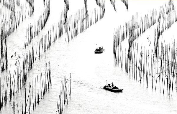魏仿儒画意组自由主题(黑白)作品:《晨捕》morning fishing