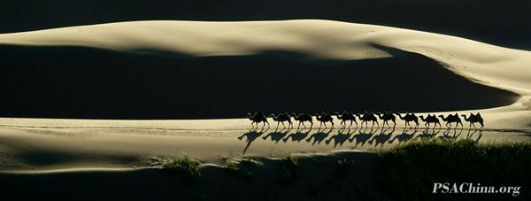 黄敏画意组自由主题(彩色)作品:《沙漠驼影》Desert camel shadow