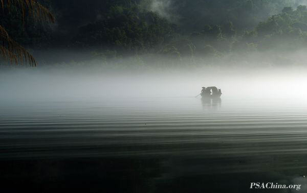 魏仿儒画意组水主题作品:《雾中行舟》Boating in the fog