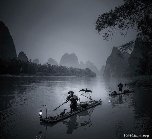 池晓虹画意组自由主题(黑白)作品:《漓江捕鱼人》Lijiang River fishing people荣获USA赛区RPS金牌!