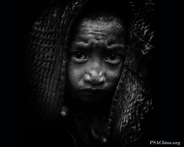 李宏画意组自由主题(黑白)作品:《凉山娃05》Child on Daliang mountain 5