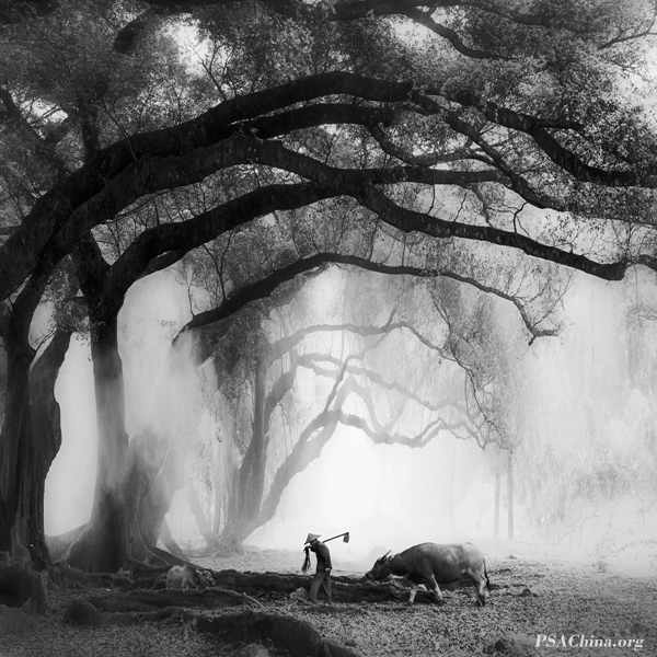 陈欣欣画意组自由主题(黑白)DPA绶带作品:《晨作》WORKING IN THE MORNING