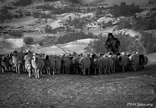 林萍画意组自由主题(黑白)作品:《晨牧》Morning grazing