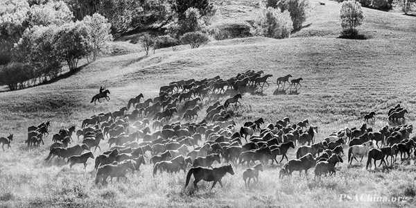 李鹏画意组自由主题(黑白)作品:《草原胜景》The grassland scenery