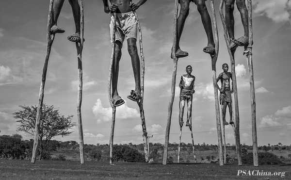 陈欣欣画意组自由主题(黑白)DPA银牌作品:《高跷秀3》walk on stilts 3