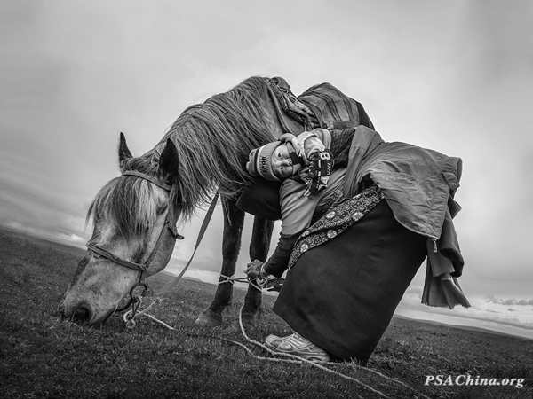 李鹏画意组自由主题(彩色)PSA金牌作品:《高原母子和马》Mother and Kid