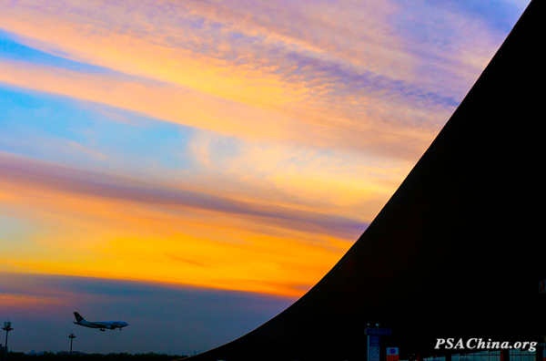 方平画意组自由主题(彩色)作品:《晚霞里的降落》Landing in the sunset