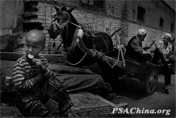 万毅画意组自由主题(黑白)作品:《吃棒糖的男孩》BOY EATING LOLLIPOP