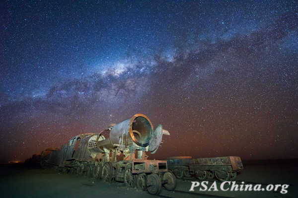 陈欣欣画意组自由主题(彩色)作品:《浩瀚苍穹》Train under galaxy