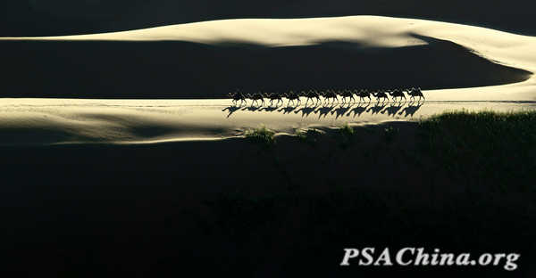 黄敏画意组自由主题(彩色)作品:《沙漠驼影》Desert camel shadow