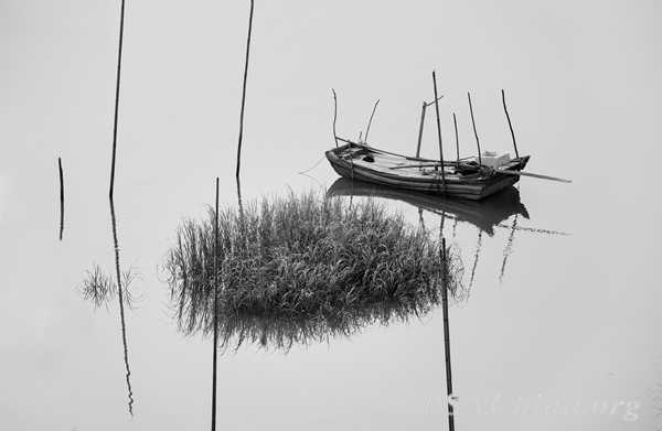 万毅画意组自由主题(黑白)Victory Salon 绶带作品:《湖边的舟三》Lake boat 3