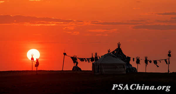 黄敏画意组自由主题(彩色)作品:《敖包与夕阳》Oboo and sunset