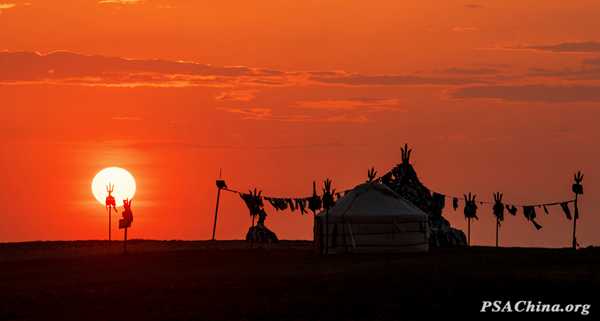 黄敏画意彩色组不限主题作品:《敖包与夕阳》Oboo and sunset