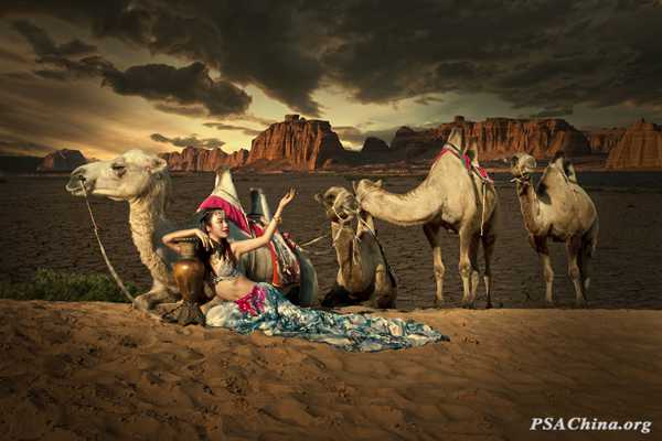 陈兰凤画意彩色组不限主题作品:《骆驼姑娘1》Camel girl 1