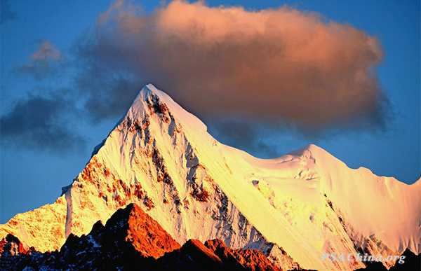 黄舟雄日出和日落组作品:《雪山夕照》Snowy sunset