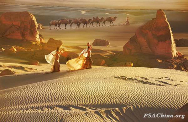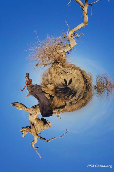 许心刚画意彩色组世界各地的女性主题作品:《大漠胡杨情》Euphrates euphratica in the desert荣获 Atlanta赛区绶带、 Rome赛区绶带!