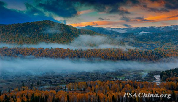 ![]() 宋志国画意彩色组“世界是我们的家园,自然是我们的家人”主题作品:《禾木秋色》Wood autumn color