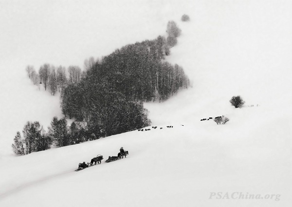 ![]() 宋志国画意单色组不限主题作品:《雪原行》Snow line