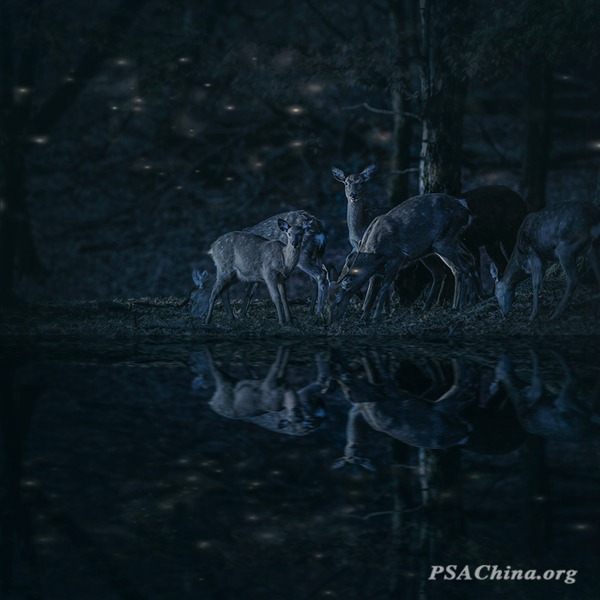 ![]() 童江川画意彩色组不限主题作品:《夜幕下的梅花鹿》The sika deer in the night