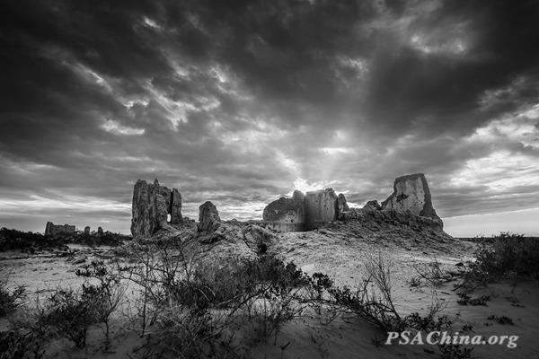 ![]() 栾利杰画意彩色组'被遗弃的'主题作品:《大漠残垣》Ancient Ruins in the Ulan Buh desert