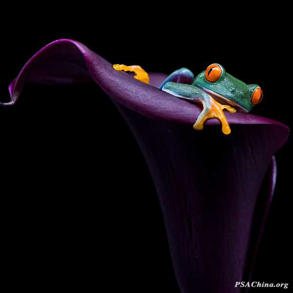 吴亮画意彩色组不限主题作品:《树蛙与花2》Tree frog and flowers2