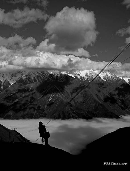 黄敏旅游组不限主题作品:《雪山之巅的架线工》A line worker on the top of a snow capped mountain
