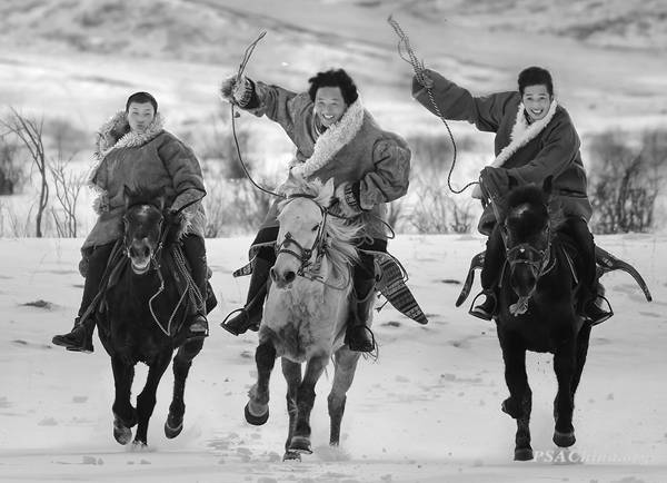 颜辛作品:《扬鞭策马》Spur houses with whip荣获画意单色组不限主题PMP赛区荣誉奖!