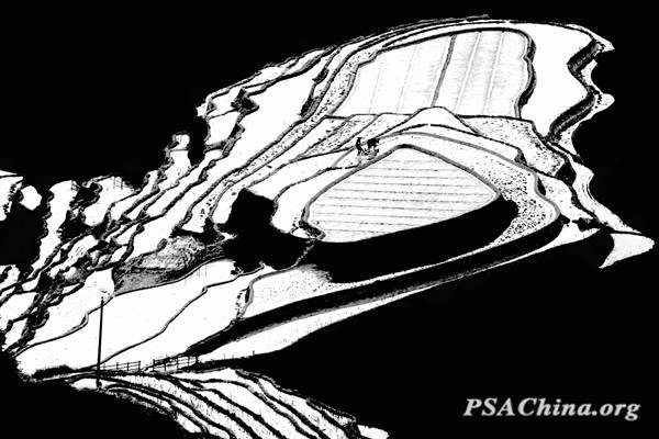 黄敏画意单色组不限主题作品:《梯田春色》SPRING TERRACE