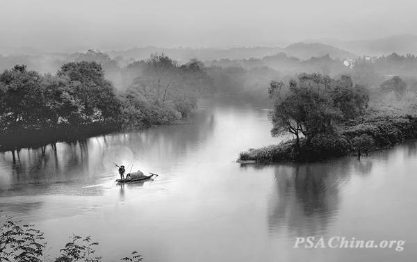 安喜平画意单色组不限主题作品:《渔歌唱晚》SINGING FISH LATE