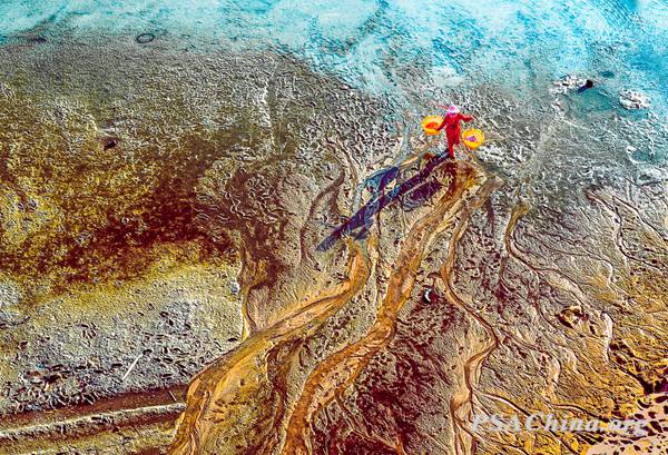 栾利杰画意彩色组不限主题作品:《滩涂赶海人》Beaches and sea people