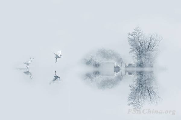 郑凯作品:《晨雾中》IN THE MORNING MIST荣获画意单色组不限主题LoWesWater赛区Slon 奖牌、West Cumbria赛区绶带!