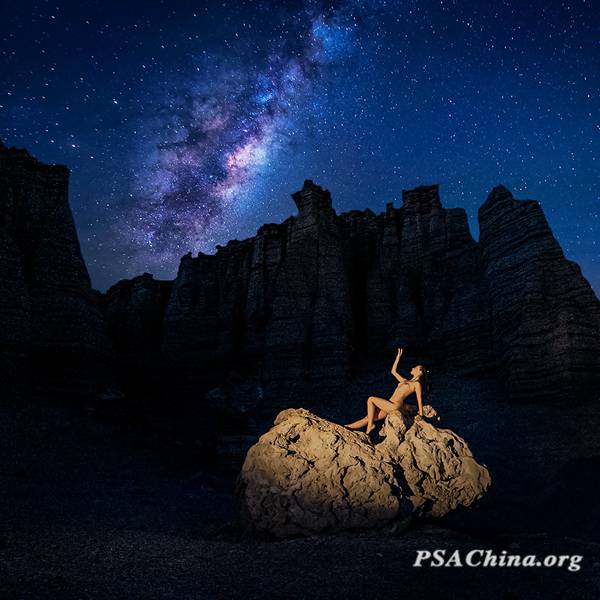 孙承波画意彩色组不限主题作品:《仰望星空》Look up at the starry sky