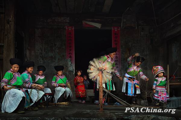 陆平画意彩色组女性主题作品:《苗寨火塘1》Miao Village fire pond1