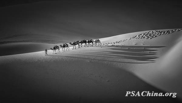 安喜平画意单色组不限主题作品:《大漠驼影》Camels in teh desert